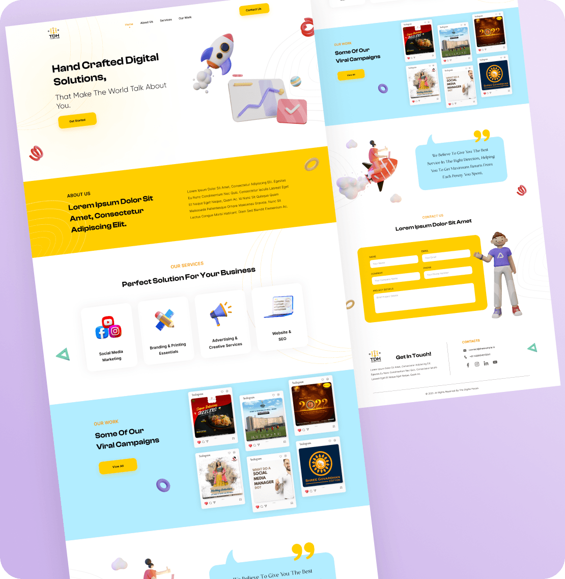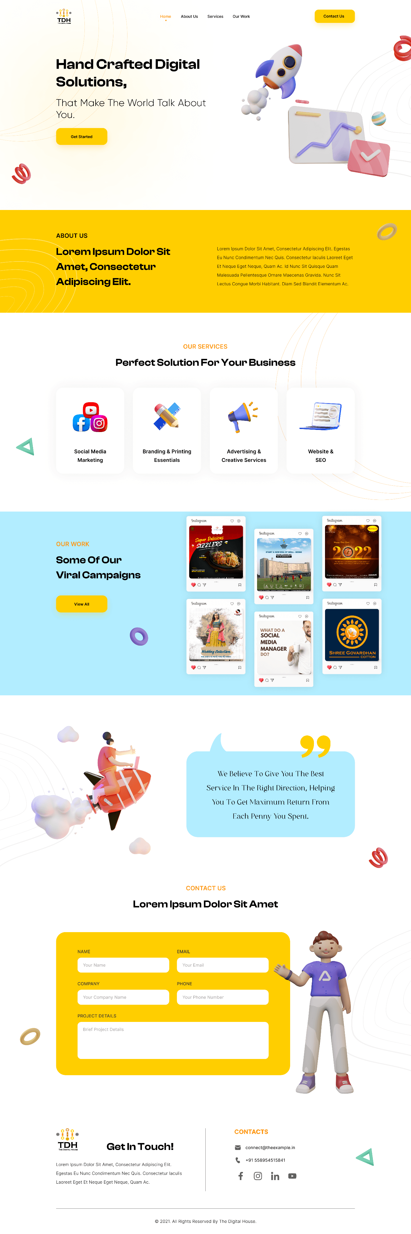 TDH is a digital marketing solutions company offering services such as social media marketing, branding & printing, ad creatives, website development, and SEO. The goal of this project was to design a modern, clean, and conversion-focused website that effectively showcases TDH’s diverse offerings while appealing to a professional audience.